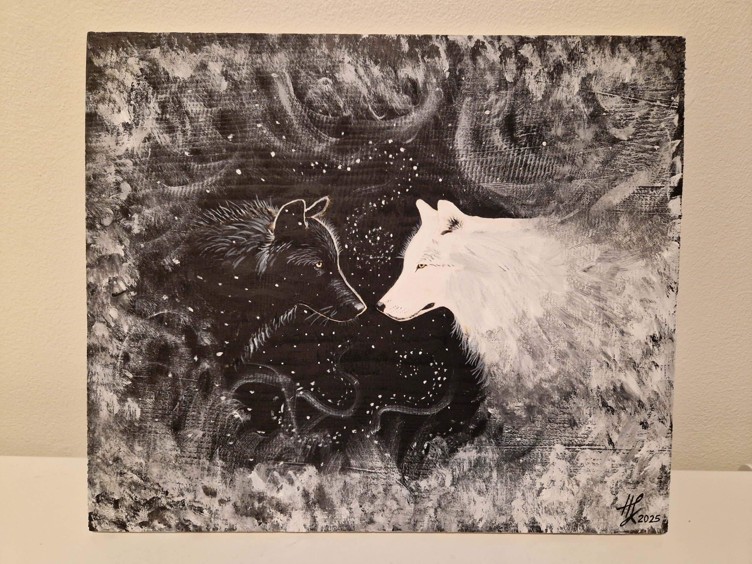 Maalattu akryyliväreillä mäntylevylle 35,1 cm * 29,7 cm * 1 cm
